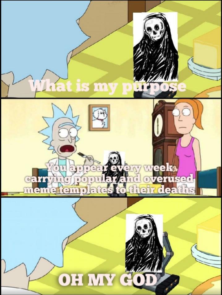 If you find this site serviceableness, please support us by sharing this posts to your preference social media accounts like Facebook, Instagram and so on or you can also Download this blog page with the title Grim Reaper Death Meme Template by using Ctrl + D for units a laptop with a Windows operating system or Command + D for laptops with an Apple operating system. If you use a smartphone, you can also use the drawer menu of the browser you are using. Whether it's a Windows, Mac, iOS or Android operating system, you will still be able to bookmark this website.